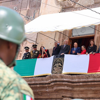 Morelia, Michoacán, 16 de septiembre de 2024.- Desde el balcón principal de Palacio de Gobierno, el mandatario estatal Alfredo Ramírez Bedolla presenció el desfile cívico militar por el 214 Aniversario de la Independencia de México.