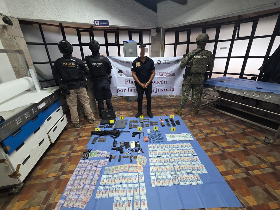 Asimismo, se decomisaron 241 cartuchos útiles, nueve cargadores, un radio de comunicación, varios teléfonos celulares, equipo de cómputo y 39 mil 310 pesos en efectivo. Entre los vehículos asegurados se encuentran cuatro motocicletas, un vehículo tipo Slingshot, una camioneta GMC y una camioneta Dodge. Las armas corresponden a los calibres 5.56 milímetros y 9 milímetros.